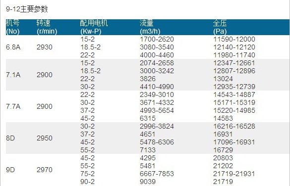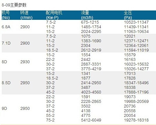 8-09/9-12高壓離心(xīn)風機(高(gāo)壓鼓風機),適合於1-7L/H熔化率的化鐵爐(lú)鼓風(fēng)性能要求,還可作為各種熔爐、鍛冶爐的鼓風用,也廣(guǎng)泛用於(yú)輸送物料和高壓強製通風。