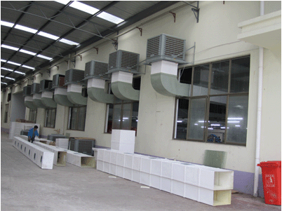 水冷空調(蒸發式冷氣機)的出風口類型選擇完全是跟據客戶的車間(jiān)環境來定選擇!